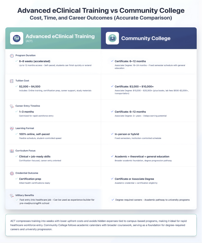 Advanced eClinical Training vs Community College: Time, Cost, and Career Paths